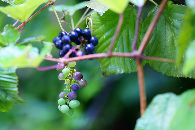 「山ぶどう」は古事記にも名前が記されているほど長い歴史のある、日本の固有種です。もともとは野山に自生する野生のぶどうで、ポリフェノールが豊富に含まれ、滋養強壮のための栄養源として食されてきました。酸味の強さに特徴があり、完熟すると程よい酸味となります。