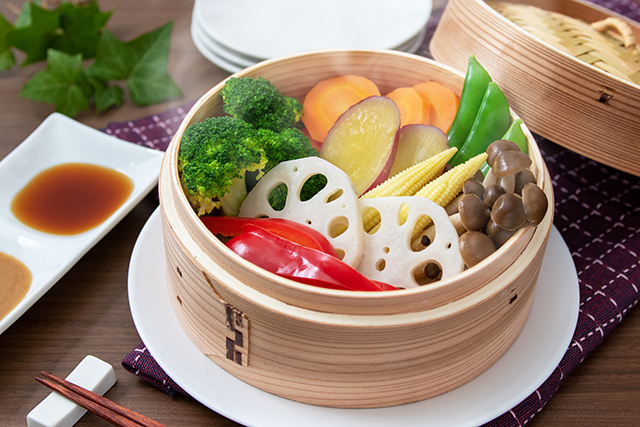 せいろ蒸しは食材を直接蒸気で加熱するため、熱に弱いビタミンCや食物繊維などの栄養素を壊さずに摂取でき、冬野菜の自然な美味しさを味わえて、彩りもきれい。油を使わずヘルシーで、腸内環境を整え、体を温める効果も注目された、近年人気急上昇の調理法です。