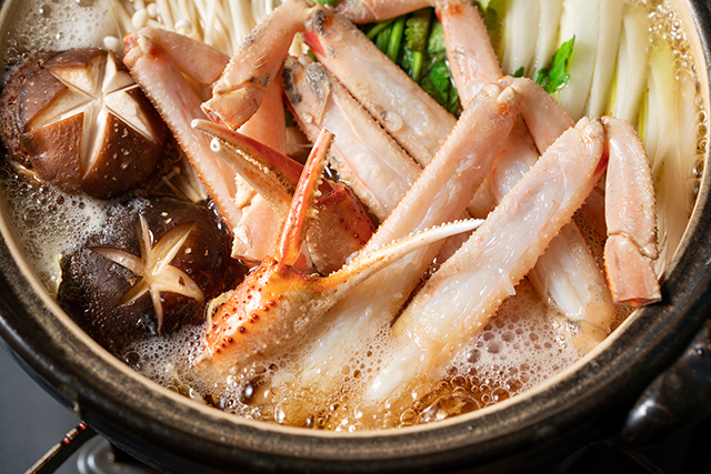 贅沢な冬の味覚代表なら、蟹を置いて他にないでしょう。中でも、「松葉蟹」「越前蟹」「間人(たいざ)蟹」「加能(かのう)蟹」は、鍋料理に最適な日本海側のブランドとして知られています。そんな豪華な蟹すきには、シャンパーニュの王者ドン・ペリ。