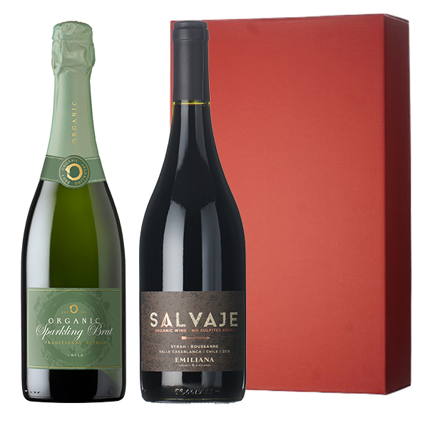 【ギフト箱付のセットです】チリの自然派生産者「エミリアーナ」のスパークリングと初のリリース「酸化防止剤無添加」の商品をセットにしました。【商品名1】 【酸化防止剤無添加】エミリアーナ サルヴァヘ<説明>エミリアーナが初リリースした酸化防止剤無添加ワイン。ブラックベーリー、ドライフルーツのベリー系果実感がフワッと届きますが、ブレンドされているルーサンヌに由来される洋梨やナッツの香りも現れます。味わいもやさしく、ふくよか、素直な印象です。<産地>チリ カサブランカ・ヴァレー <ぶどう品種>シラー、ルーサンヌ<特長>タイプ:赤 / 味わい:ミディアムボディ <容量>750【商品名2】オー・レゼルヴァ スパークリング・ブリュット / エミリアーナ<説明>アロマティックな余韻を楽しめる「オー・レゼルヴァ」シリーズのオーガニックのスパークリングワインです。<産地>チリ その他チリ<ぶどう品種>シャルドネ、ピノ・ノワール<特長>タイプ:白泡 / 味わい:辛口 <容量>750画像がヴィンテージと異なる場合がございます。ご了承下さい。