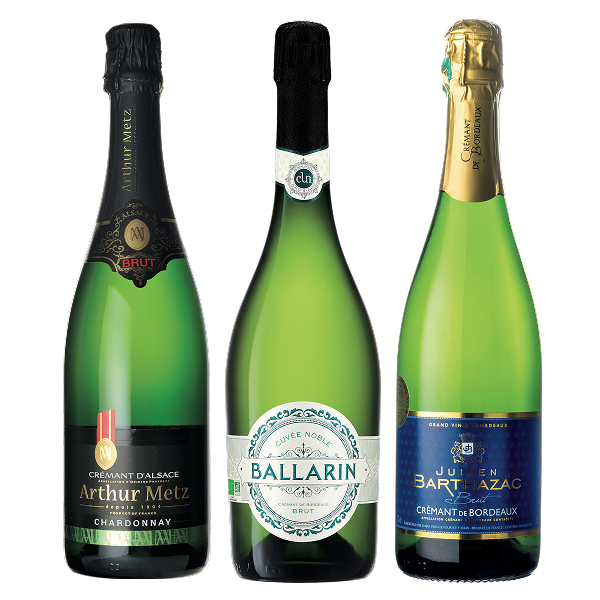 シャンパンと同じ製法でつくるクレマン(スパークリング)。きめ細やかな泡立ちをお楽しみいただけます。【商品名1】 アーサー・メッツ クレマン・ダルザス・シャルドネ / アーサー・メッツ<説明>美食の都アルザスからやって来た、本格派スパークリング!<産地>フランス アルザス<ぶどう品種>シャルドネ <特長>タイプ:白泡 / 味わい:辛口<容量>750【商品名2】バラリン・キュヴェ・ノーブル クレマン・ド・ボルドー・ブリュット / セリーヌ<説明>オーガニックワイン。フレッシュで繊細な味わいで、白い果実や白い花の素晴らしい香り漂う逸品です。<産地>フランス ボルドー その他ボルドー<ぶどう品種>セミヨン ミュスカデル <特長>タイプ:白泡 / 味わい:辛口<容量>750<受賞歴>サクラアワード2025シルバー、2024シルバー受賞【商品名3】ジュリアン・バルタザック・クレマン・ド・ボルドー / ジュリアン・バルタザック<説明>クレマンドボルドーはシャンパーニュ製法で作られておりキメ細かな泡が長続きします。<産地>フランス ボルドー その他ボルドー<ぶどう品種>セミヨン カベルネ・フラン <特長>タイプ:白泡 / 味わい:辛口<容量>750<受賞歴>サクラワインアワード2024ゴールド受賞画像がヴィンテージと異なる場合がございます。ご了承下さい。