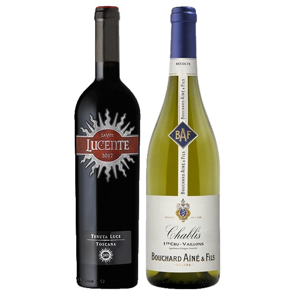 イタリアとブルゴーニュの名門ワインをセレクト。贅沢な世界巡り気分をプレゼントに。【商品名1】 ルチェンテ 2023 / ルーチェ・デッラ・ヴィーテ<説明>カリフォルニアのロバートモンダヴィと、イタリアのフレスコバルディのジョイント・ベンチャー「ルーチェ」のセカンド<産地>イタリア トスカーナ モンタルチーノ<ぶどう品種>メルロ サンジョヴェーゼ <特長>タイプ:赤 / 味わい:フルボディ<容量>750【商品名2】シャブリ プルミエ・クリュ ヴァイヨン 2021 / ブシャール・エイネ・エ・フィス<説明>蜂蜜のような芳醇な香りがフィニッシュのときに広がります。<産地>フランス ブルゴーニュ シャブリ<ぶどう品種>シャルドネ <特長>タイプ:白 / 味わい:やや辛口<容量>750画像がヴィンテージと異なる場合がございます。ご了承下さい。