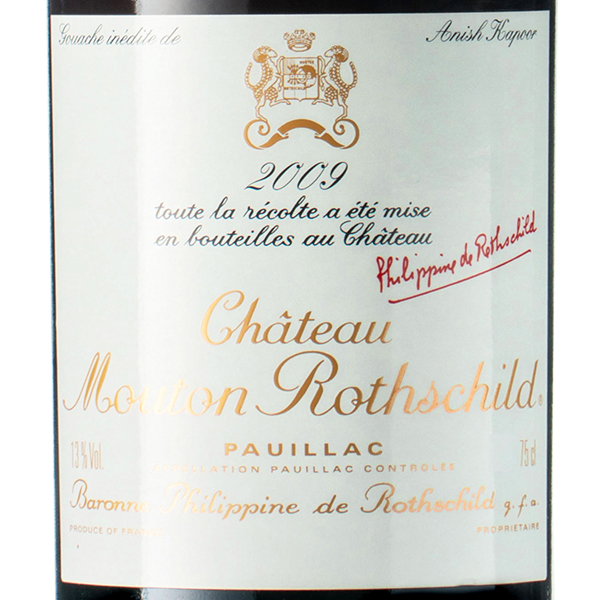 パーカーポイント99点獲得、メドック格付け第1級。偉大なヴィンテージ。09年のラベルはイギリスの彫刻家アニッシュ・カプーアが手掛けました。
