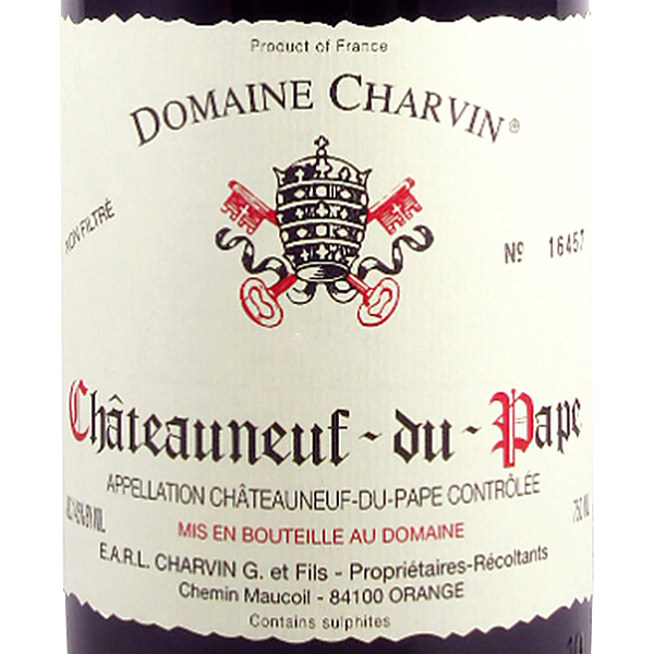 14区画のアッサンブラージュ。樹齢は50年~80年。全て手収穫。発酵は野生酵母のみで大型セメントタンクで行う。シャトー・ヌッフ・デュ・パプでは珍しい全房発酵でマセラシオンは約1ヶ月間。その後、移し替えをしてセメントタンクで20ヶ月間熟成し、ノン・フィルターでボトリング。