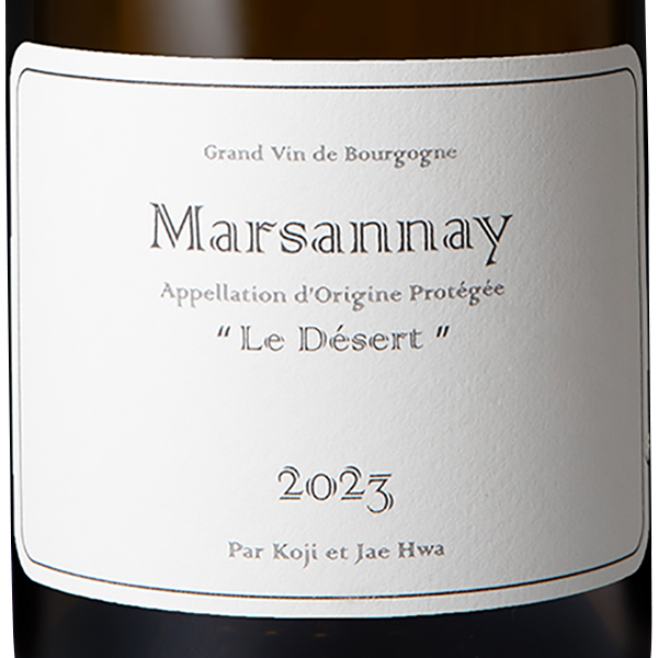 2017年に購入した自社畑「ル・デゼール」産のシャルドネ100%。「石灰質に富む土壌のためシャルドネを植えました」。2023年がファーストヴィンテージ。0.47ha。ビオロジック栽培。2023年に「ビュロー・ヴェリタス」の認証を取得。収量は25hl/ha。除梗しない。天然酵母のみで発酵。250リットルの砂岩製のアンフォラ20%、シャサン社製「グラン・ファン」の新樽40%、同1回使用樽40%で発酵後、16ヶ月間熟成。ノンフィルターでビン詰め。
