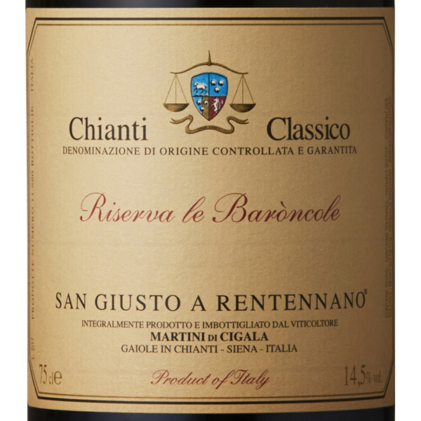 カシス、ブラックチェリー、ブルーベリー、いちじくなどの果実味と、酸とタンニンのバランスが程良く、10年以上の熟成が見込まれる素晴らしい味わいです。サンジュースト・ア・レンテンナーノは、DOCGキャンティ・クラシコのガイオーレ・イン・キアンティ地区の南部にあり、シトー派修道会の古い僧院だったという歴史あるワイナリーです。現在のキアンティの基礎となる造り方を築き上げたリカーゾリ男爵家の所有だったこの土地を、血縁のマルティーニ・ディ・チガラ家が継承。現在はルカ・マルティーニ氏が当主としてワイン造りを行っております。サン・ジュースト・ア・レンテンナーノの成功は卓越したブドウ畑によるもので、この畑から生まれるワインは毎年ワインアドヴォケイトやアントニオガッローニなどワイン専門誌で高評価を獲得し、キアンティ・クラシコ地区の最も名高いワイナリーの一つとして、揺るぎない地位を築いています。画像がヴィンテージと異なる場合がございます。ご了承下さい。